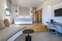 Junior Suite with Sea View is a luxurious and cosy suite of white, grey, earthy and wooden elements.You can relax in a King Size Bed and at the same time open your eyes to the calm Korintian gulf.